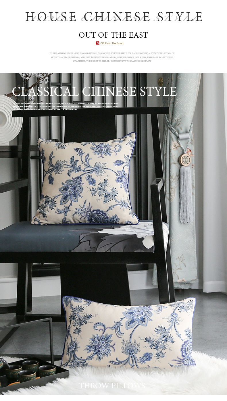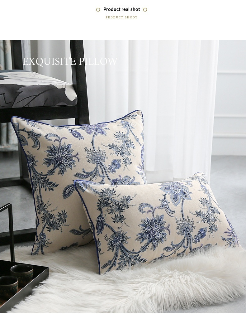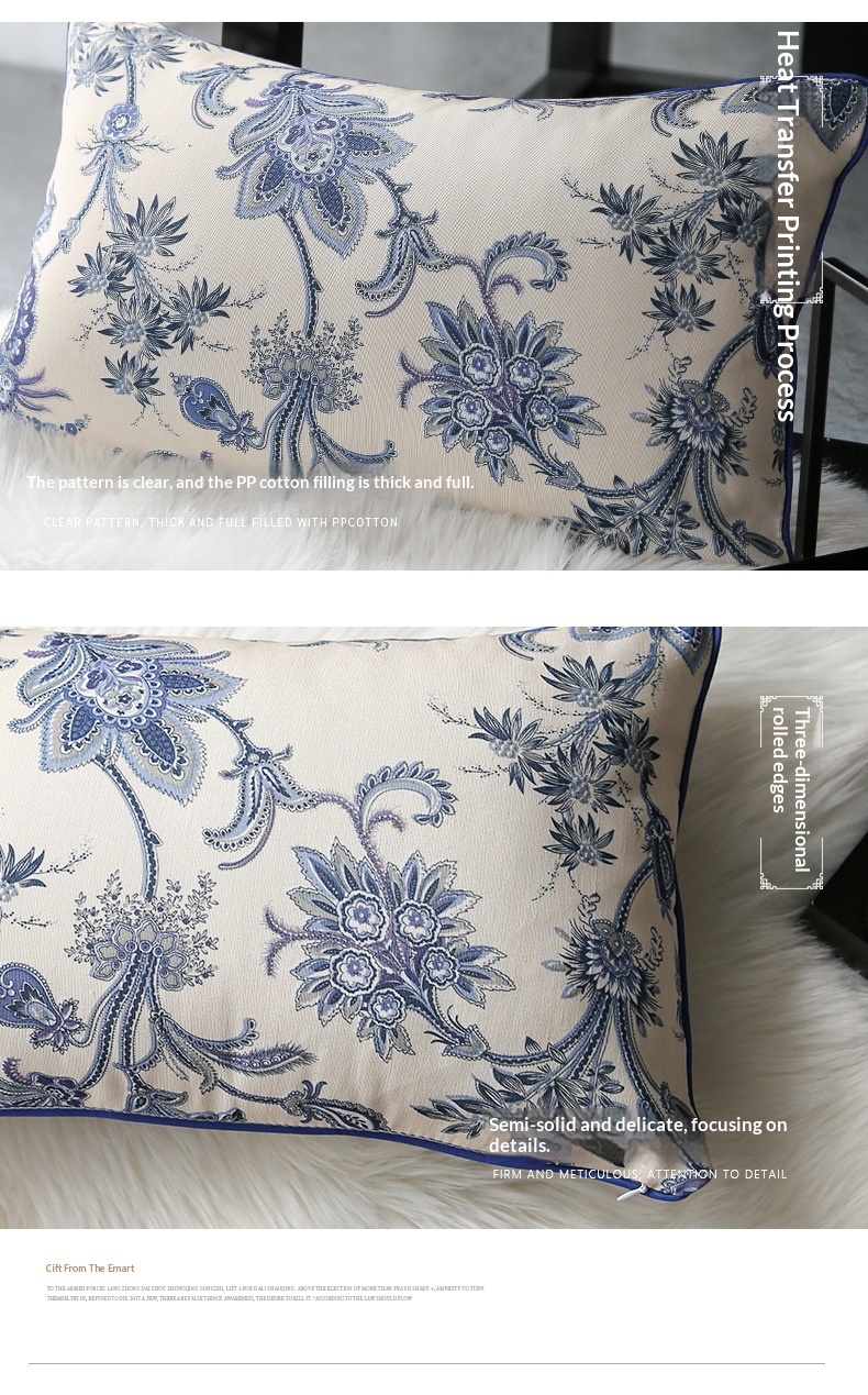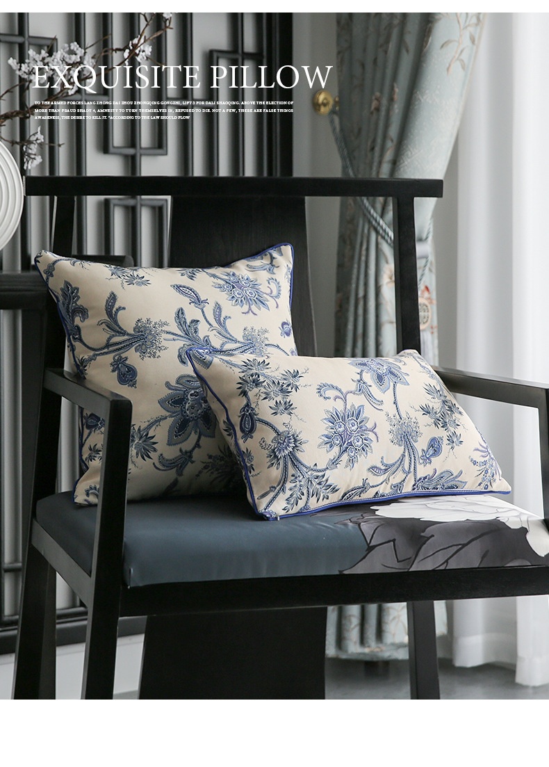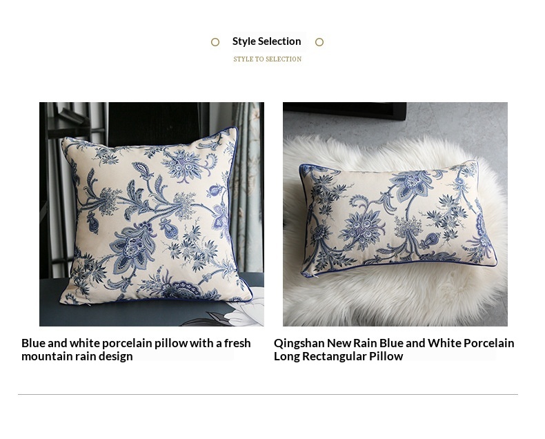 Color: Empty Mountain, New Rain Blue and White Porcelain Pillow, Empty Mountain, New Rain Blue and White Porcelain Long Pillow